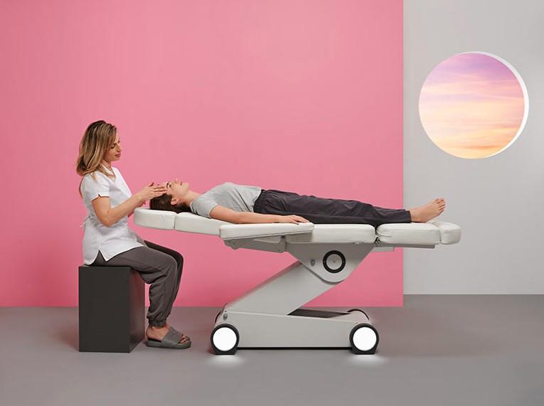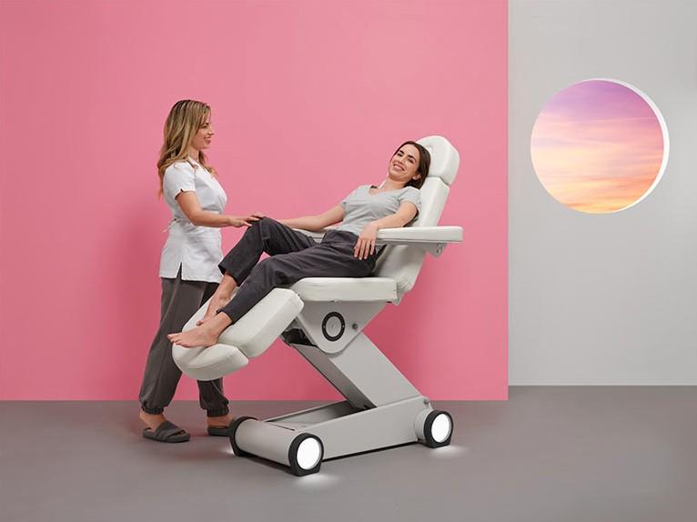 Косметологическая кушетка "MK155 LA PRINCESA" - инновационная кушетка с 4-мя двигателями, максимальной устойчивостью и сверхкомпактным основанием. Двигатели позволяют легко регулировать спинку, подножку, высоту и положение угла наклона кресла с помощью пульта ручного управления. МК155 оснащена белой светодиодной подсветкой в основании. Разработано в Барселоне!