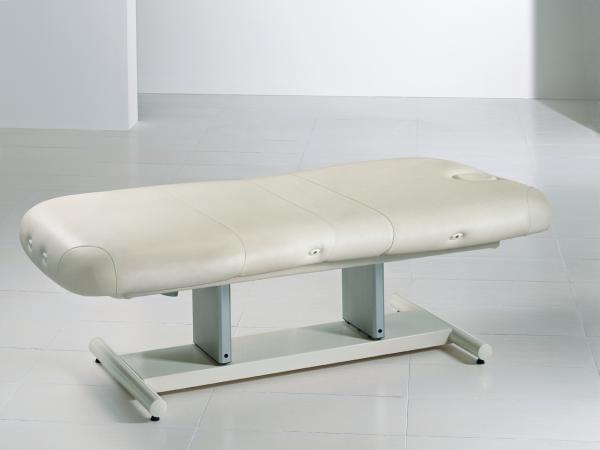Многофункциональная спа кушетка на электроприводе, с металлическим каркасом, с отверстием для лица, удобная настройка по высоте, с регулирующей спинкой и подножкой. За счет высокой эргономичности ложа кушетка хорошо подходит для косметологических, восстанавливающих и расслабляющих спа процедур, рефлекторного массажа стоп. Возможен вариант с внутренним подогревом матраса.