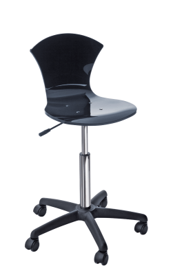 Стул для косметолога выполнен из пенополиуретана, основание пластиковое пятилучье черного цвета на колесах, регулировка высоты пневматическая. Вариант цвета: черный, белый