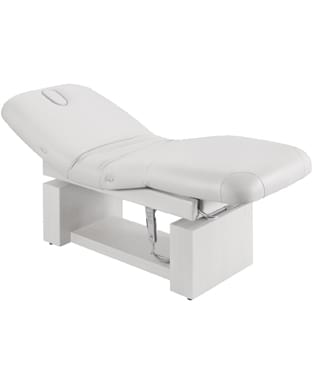 Белый матрас, основание крашеное дерево. Высота, спинка и ножки регулируются электрически, подогрев в зоне поясницы, полка снизу, отверстие для лица,крепление для полотенец как опция, подголовник, подлокотники и подставка для рук в комплект не входят.